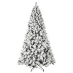 5ft 6ft 8ft 9ft Pre-Lit Flocked Christmas Tree Hinged Artificial Xmas Trees Premium PVC Branches With Lights